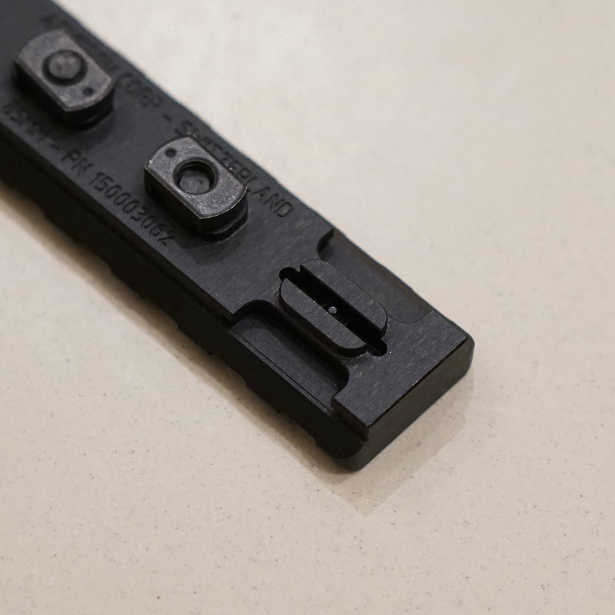 The widely used M-LOK mounting system has a weakness: it provides excellent mounting but lacks precise positioning. Since M-LOK was not originally designed for mounting aiming devices, its tolerances are comparatively large. If a laser aiming device is attached to M-LOK using a conventional rail segment, the point of impact can shift by up to 13 mils or 45 MOA if the laser is subjected to force (e.g., by being struck or the weapon falling over). This means no shooter can be certain of their target, and only firing reveals the point of impact.